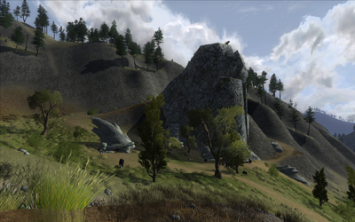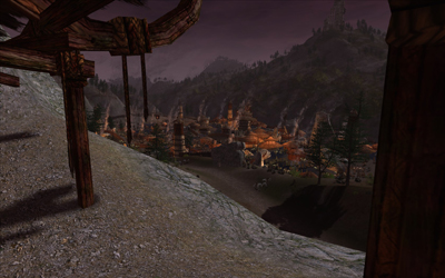 (87.8S, 17.3W) The Overlook gives a vantage of the great valley of Wulf's Cleft, where warriors from across Dunland muster to invade Rohan. |