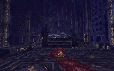 (8S, 99.2W) The bridge of Khazad-dum was conceived as an ancient defence designed to deter any who might seek to invade the city. The chasm it crosses is among the largest in Moria, and has been here since the city was founded thousands of years ago. Now the bridge lies in ruin, its western span jutting forlornly out over the depths of the chasm, the very stone shattered and charred by unknown forces. |