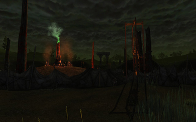 (31S, 44.8W) This spider-infested ruin lies at the centre of the Midgwater Marshes. It is rumoured that the wandering Rangers frequent this ancient fortress. |