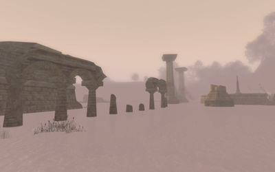 (29.6S, 45.6W) These ancient ruins stand at the edge of the Midgewater Marshes and the Chetwood, a meagre remnant of a long forgotten age. |